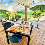 The 3-star Douce Quietude "L'Escapade" Chambre D'Hotes Vals-les-Bains hotel is approximately a 10-minute drive from Camping Au Fil De La Volane and features a terrace with outdoor dining areas.